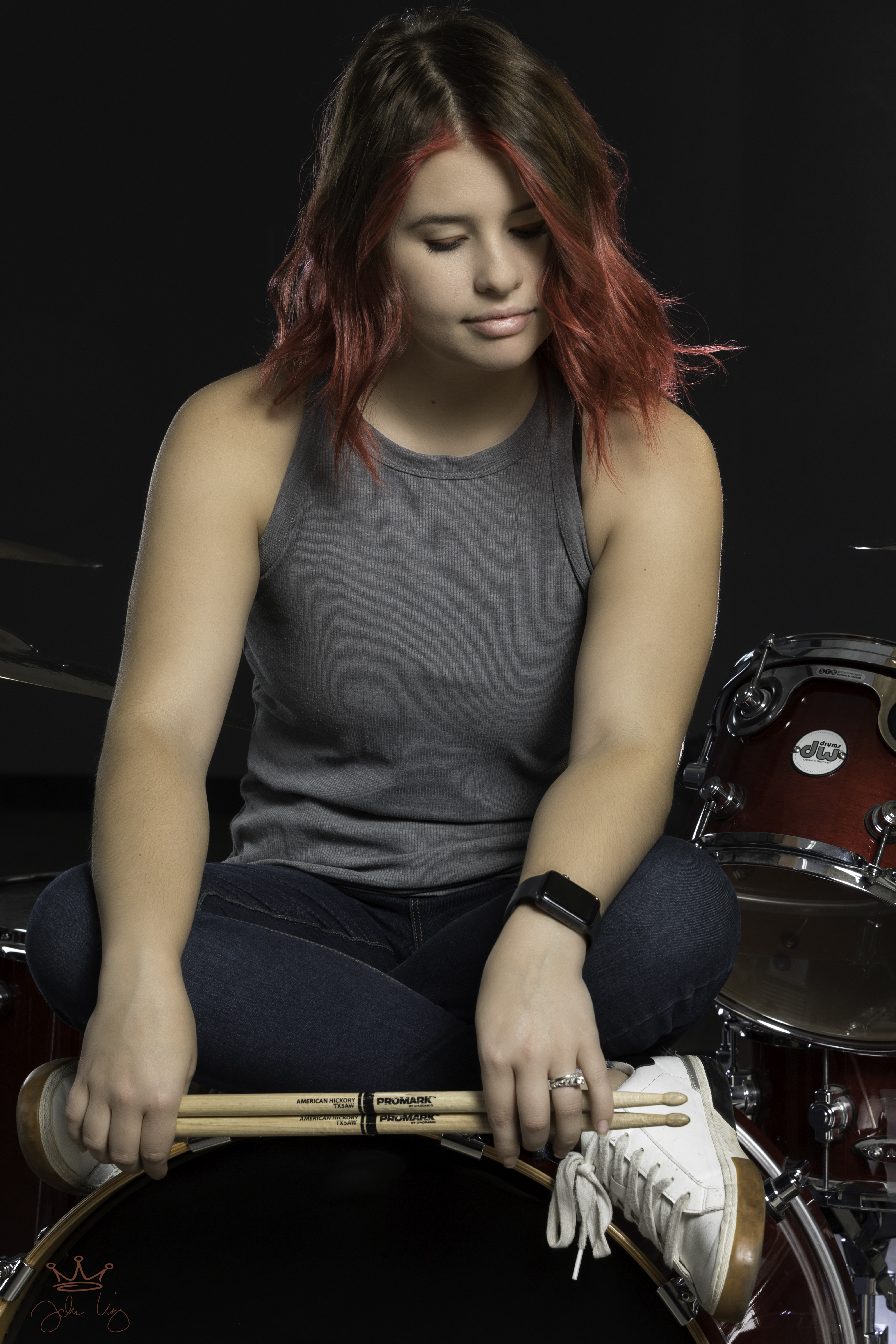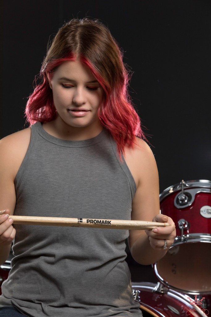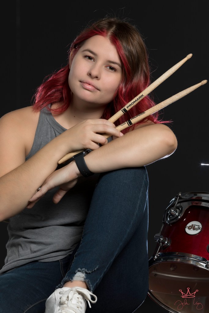 Megan is a friend and an incredible drummer. Honestly, she should be out on tour with somebody…really…she’s that good. When I asked if she might be open to shooting with my class she didn’t even hesitate and brought her drums in for a really fun session! My students loved it…I loved it…what a great evening! Enjoy some cool drummer style promotional images!!! Outstanding!