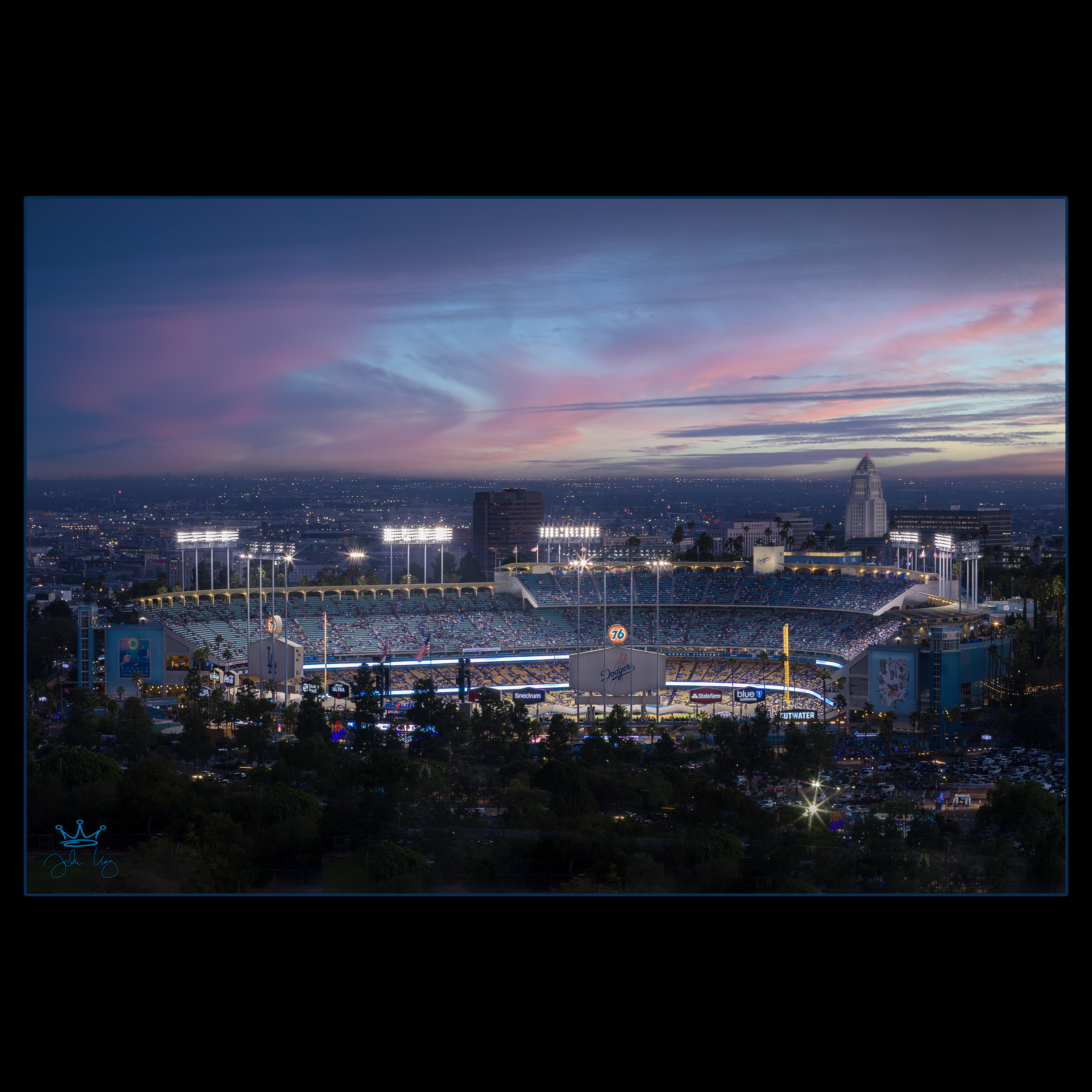 I was thinking about the upcoming baseball season with Spring training just around the corner. It’s an exciting time of year for our family as we hold the baseball season just a little sacred and enjoy the annual race for the fall classic. Last October, I took my night and sunset class to a “secret overlook” in Elysian Park that has incredible views of Dodger Stadium. The Dodgers were playing their last regular season game against the Rockies and the stadium was absolutely jumping as the Dodgers were already set to join the post season. We had an incredible sunset and a great view of the stadium which resulted in an incredible session for my students. Here is one of the shots that I composed before the game got underway… Outstanding and Go Angels!!! ; )